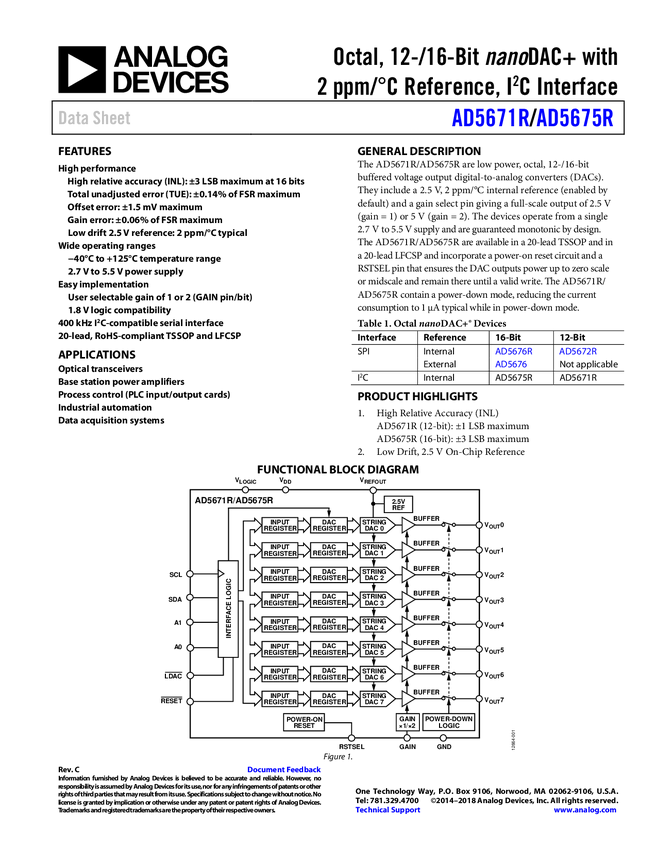 AD5671R Octal, 12-Bit DAC+ with 2 ppm/°C Reference, I Interface