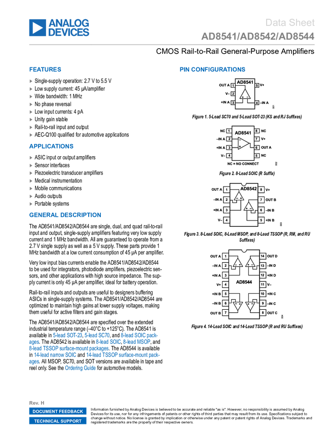 AD8541 CMOS Rail-to-Rail General-Purpose Amplifiers