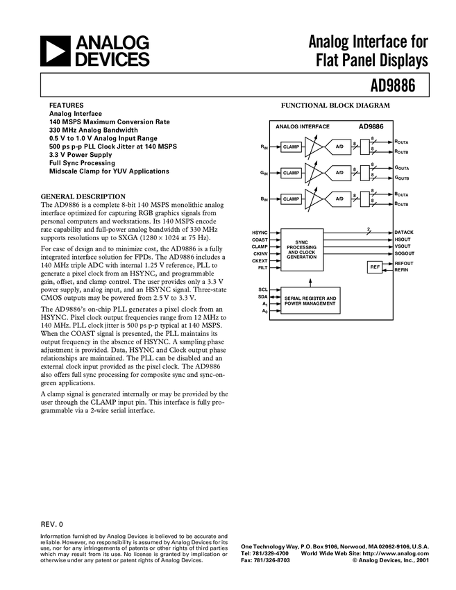 AD9886 Complete 8-Bit 140 MSPS Analog Interface