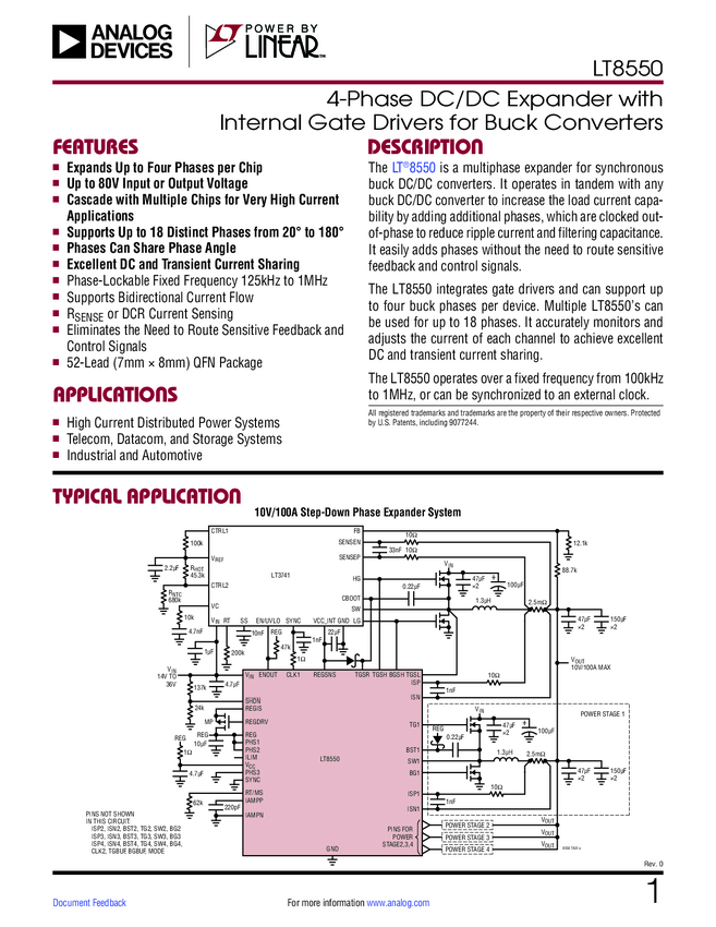 LT8550 4-Phase DC/DC Expander with Internal Gate Drivers for Buck Converters