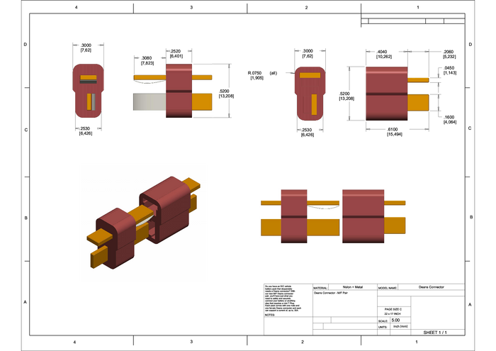007117 Złącze zasilające; wtyk DEAN-T; 36A; 600V; 2 pin; lutowane; na przewód; cze...