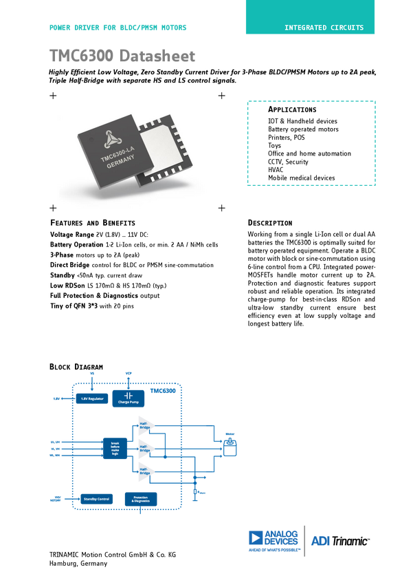 TMC6300 Highly Efficient Low Voltage, Zero Standby Current Driver for 3-Phase BLDC/...