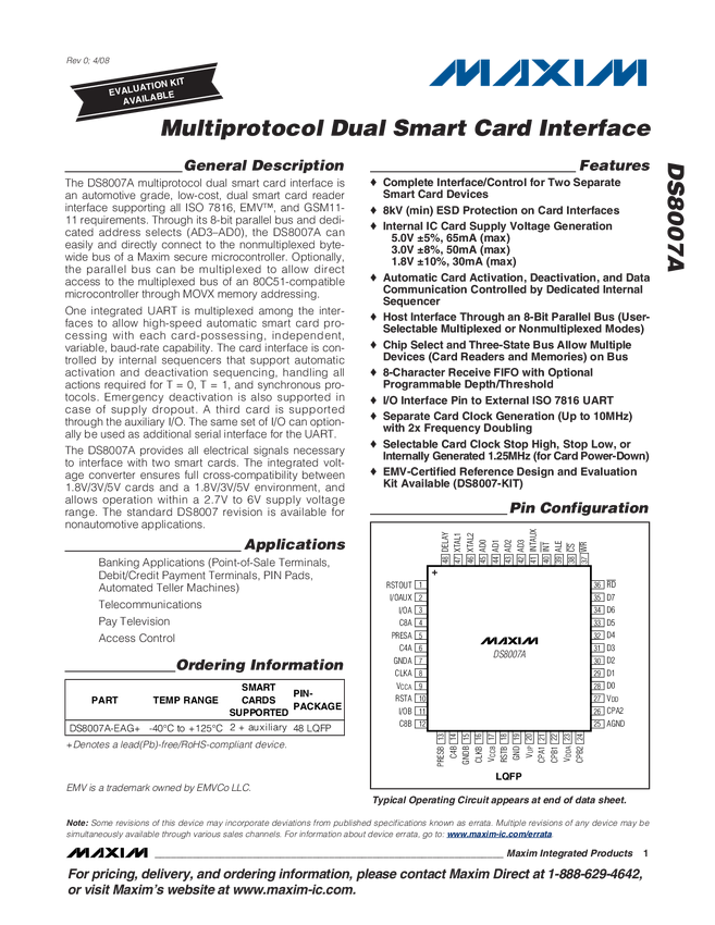 DS8007A Automotive Grade Multiprotocol Dual Smart Card Interface