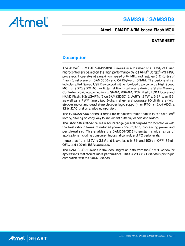 ATSAM3SD8B SAM3S8/SD8 Series Datasheet