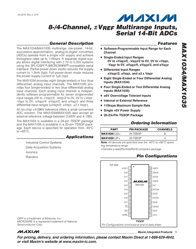 MAX1034 8-/4-Channel, ±V Multirange Inputs, Serial 14-Bit ADCs