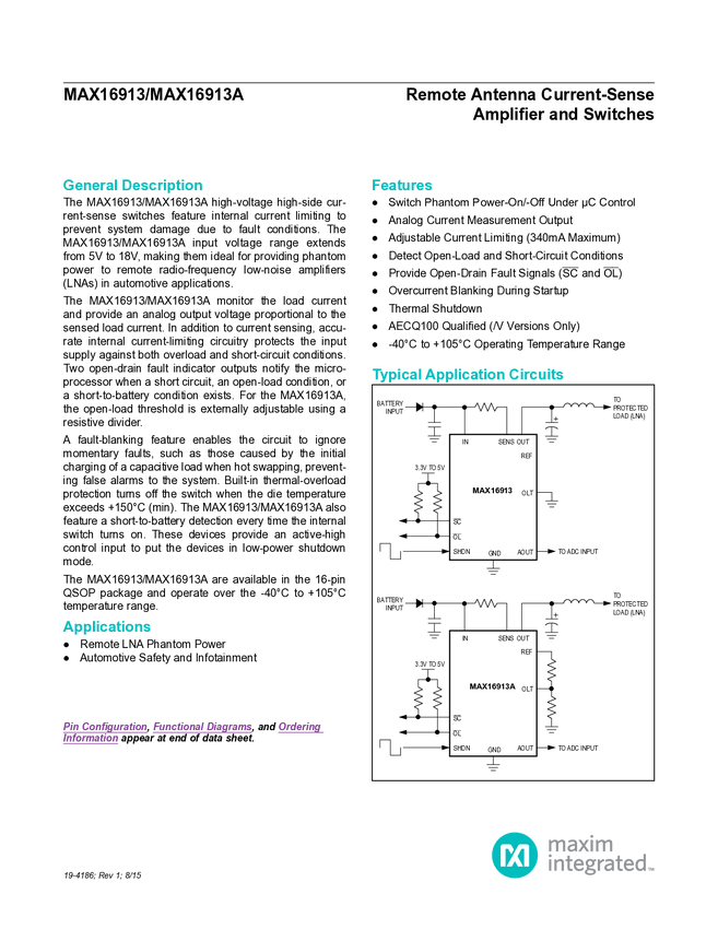 MAX16913A Remote Antenna Current-Sense Amplifier and Switches