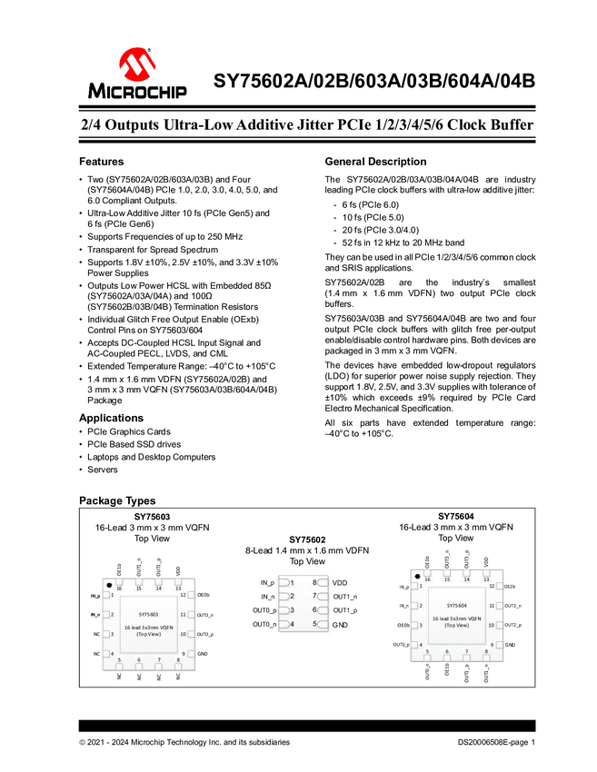 SY75602A/02B/603A/03B/604A/04B - 2/4 Outputs Ultra-Low Additive Jitter PCIe 1/2/3/4/5/6 Clock Buffer