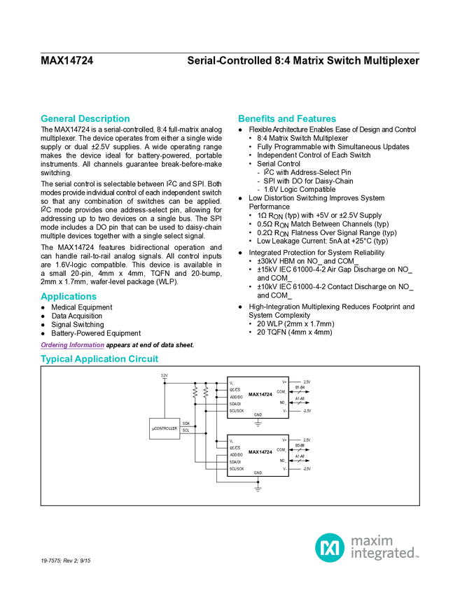MAX14724 Serial-Controlled 8:4 Matrix Switch Multiplexer