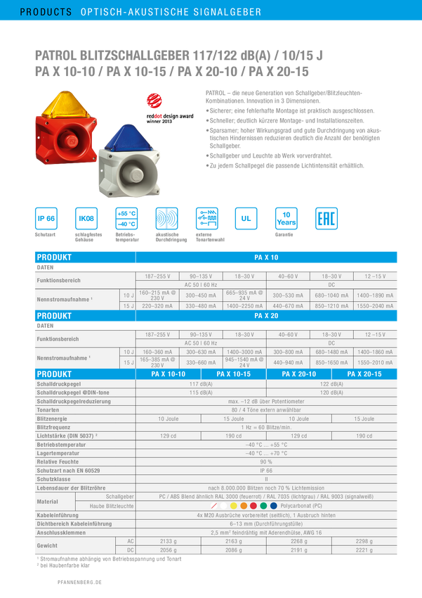 23372104000 Generator sygnału optyczno-akustycznego Pfannenberg PA X 20-15 230 AC AM 23...