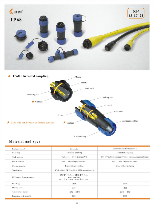 Wtyk; SP1310/P9I; 9 torów; lutowany; 0,75mm2; 4-6,5mm; SP13; na przewód; IP68; 3A; 125V; WEIPU; RoHS