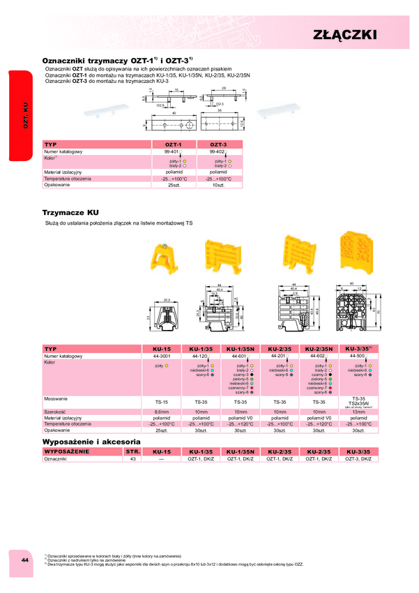 Element blokujący; KU-15 A44-3001; trzymacz; do złączek na szynę DIN; zastosowanie: ZUG-G10, ZUG-G4; na szynę din; żółty; POKÓJ; RoHS