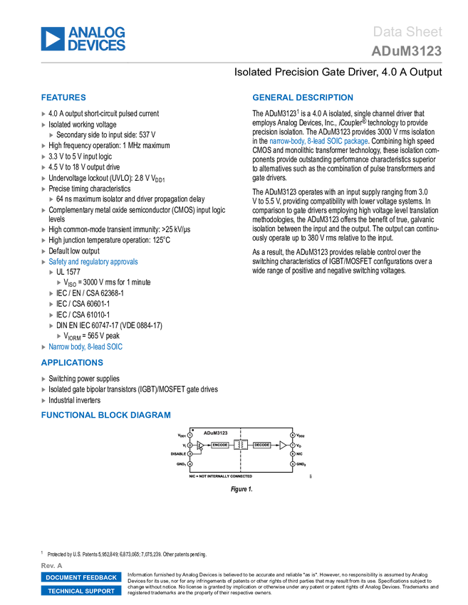 ADUM3123 Isolated Precision Gate Driver, 4 A Output