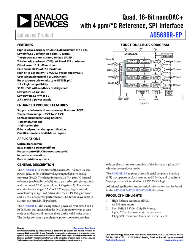 AD5686R Quad, 16-Bit DAC+™ with 2 ppm/°C On-Chip Reference and SPI Interface