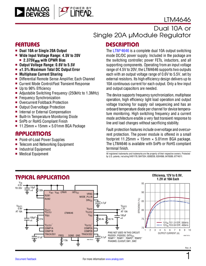 LTM4646 Dual 10A or Single 20A μModule Regulator