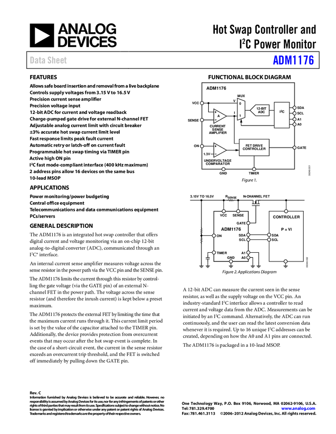 ADM1176 Hot Swap Controller and IC® Power Monitor