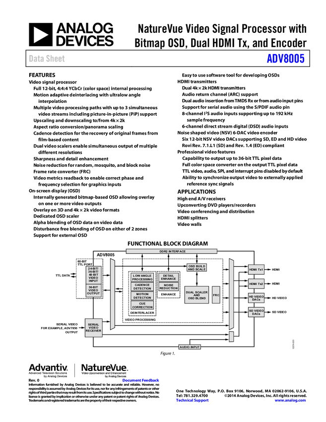 ADV8005 NatureVue Video Signal Processor with Bitmap OSD, Dual HDMI T, and Encoder