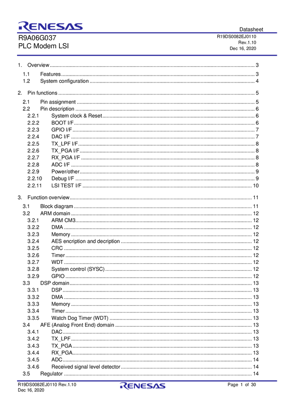 R9A06G037 High Performance Narrow Band Power Line Communication Modem IC