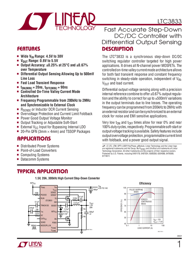 LTC3833 Fast Accurate Step-Down DC/DC Controller with Differential Output Sensing