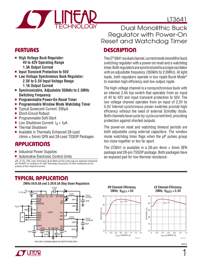 LT3641 Dual Monolithic Buck Regulator with Power-On Reset and Watchdog Timer