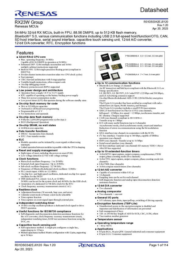 RX23W 32-bit Microcontrollers and Module with Bluetooth 5 for IoT Endpoint Device...