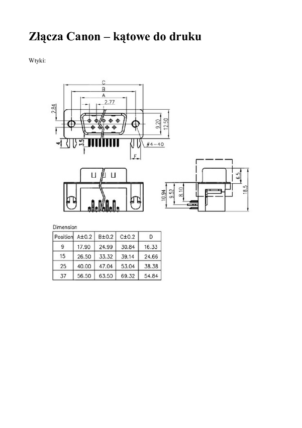 00381 Wtyk; D-Sub; Canon 25p; 25 torów; THT; kątowe 90*; standard 7,2mm ;czarny;...