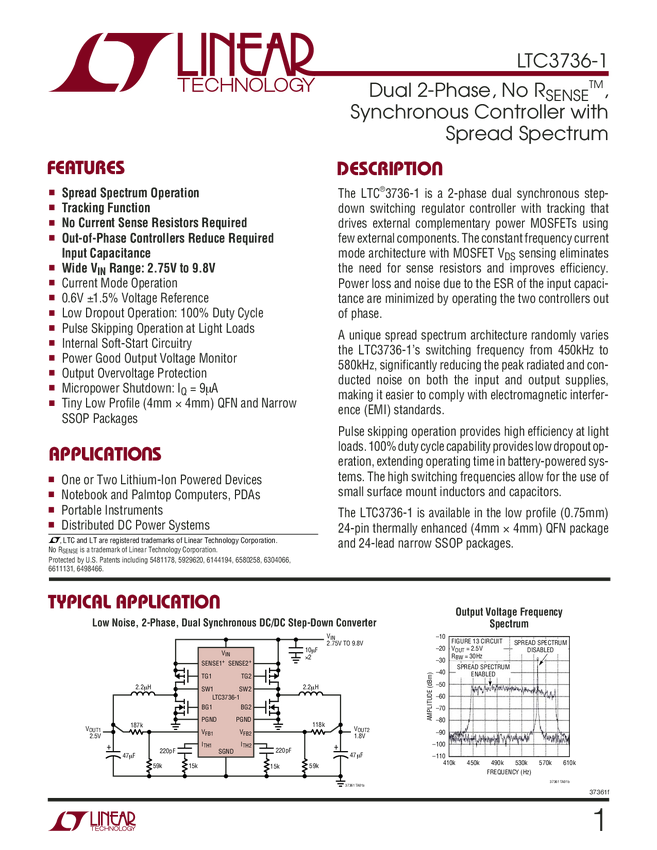 LTC3736-1 Dual 2-Phase, No R, Synchronous Controller with Spread Spectrum