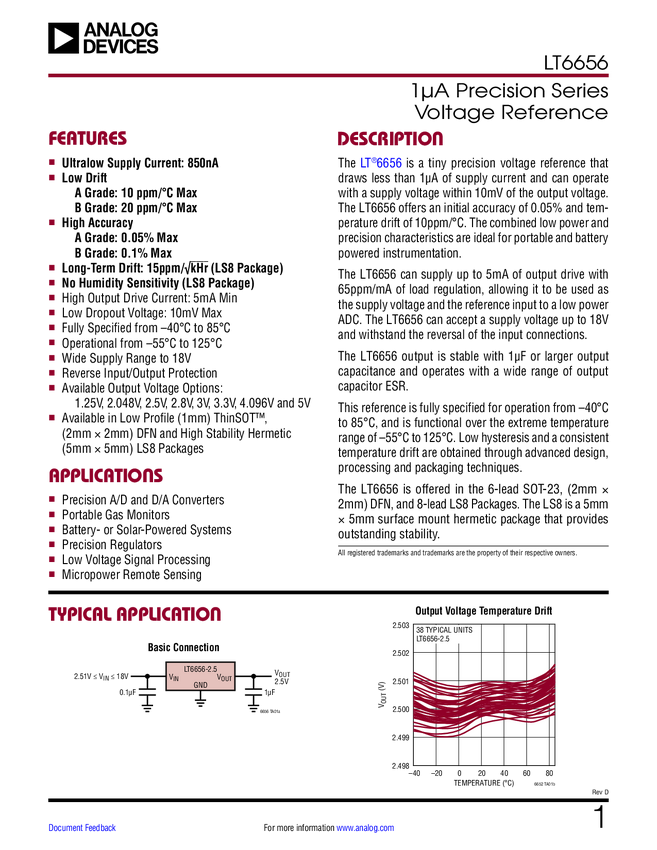 LT6656 1μA Precision Series Voltage Reference