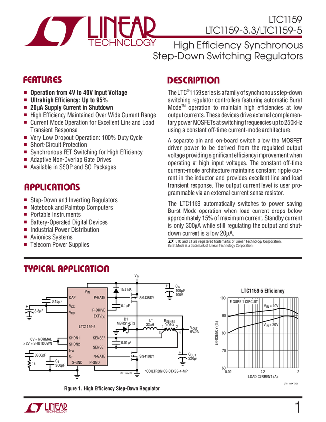 LTC1159 High Efficiency Synchronous Step-Down Switching Regulators