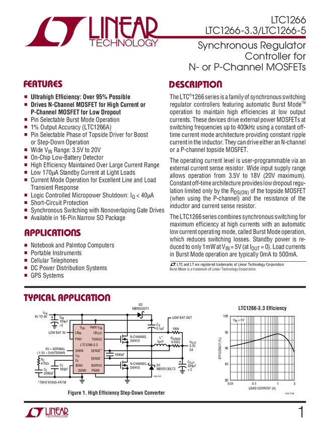 LTC1266 Synchronous Regulator Controller for N- or P-Channel MOSFETs