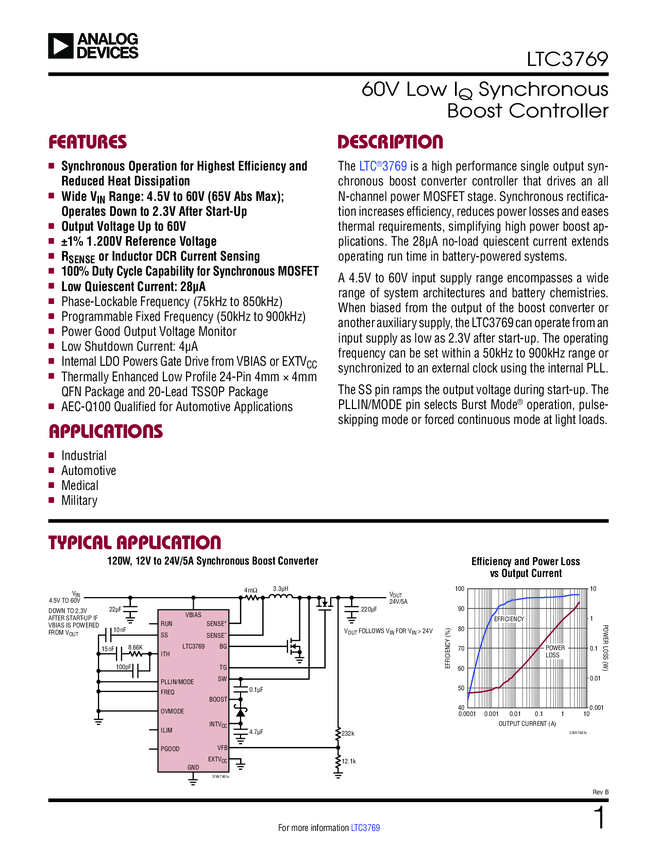 LTC3769 60V Low I Synchronous Boost Controller with PassThru