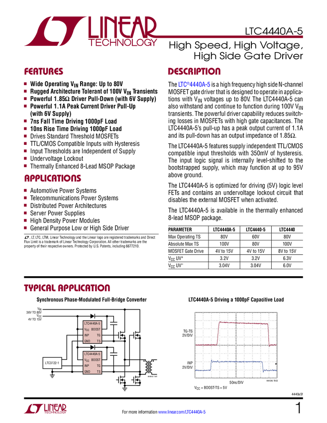 LTC4440A-5 High Speed, High Voltage, High Side Gate Driver