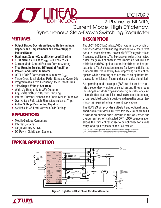 LTC1709-7 2-Phase, 5-Bit VID, Current Mode, High Efficiency, Synchronous Step-Down Sw...