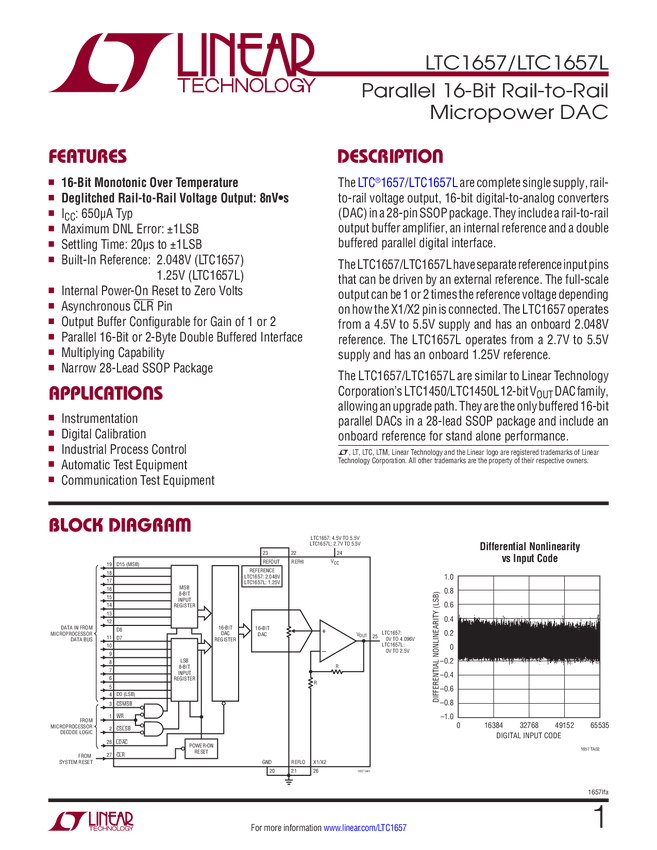 LTC1657 Parallel 16-Bit Rail-to-Rail Micropower DAC