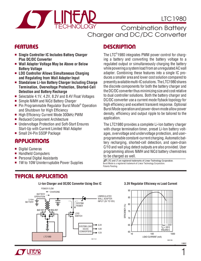 LTC1980 Combination Battery Charger and DC/DC Converter