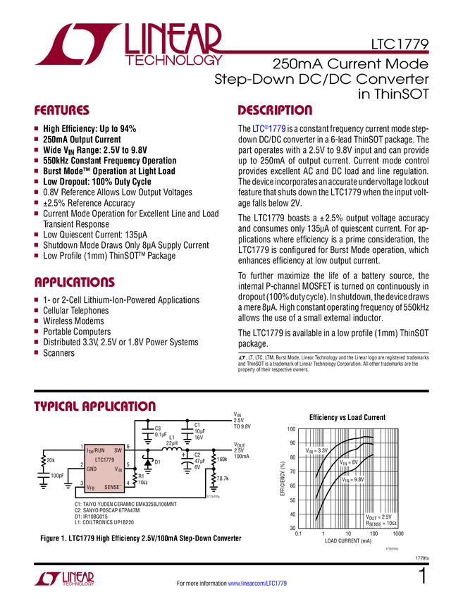 LTC1779 250mA Current Mode Step-Down DC/DC Converter in SOT-23