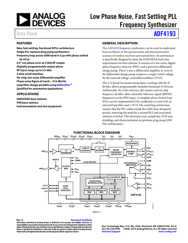 ADF4193 Low Phase Noise, Fast Settling PLL Frequency Synthesizer
