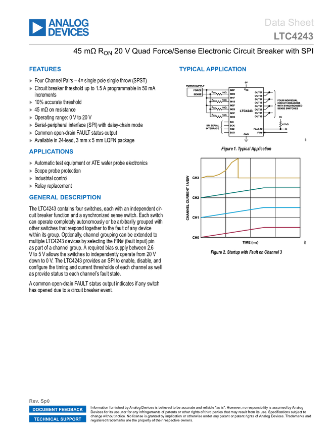 LTC4243 45 mΩ R 20 V Quad Force/Sense Electronic Circuit Breaker with SPI