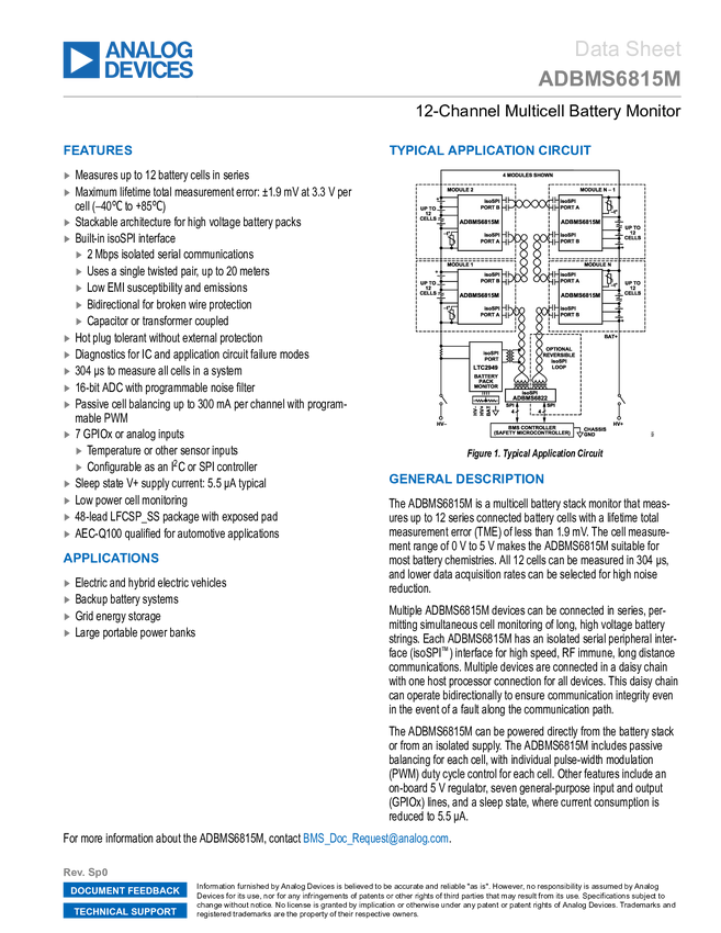 ADBMS6815M 12-Channel Multicell Battery Monitor