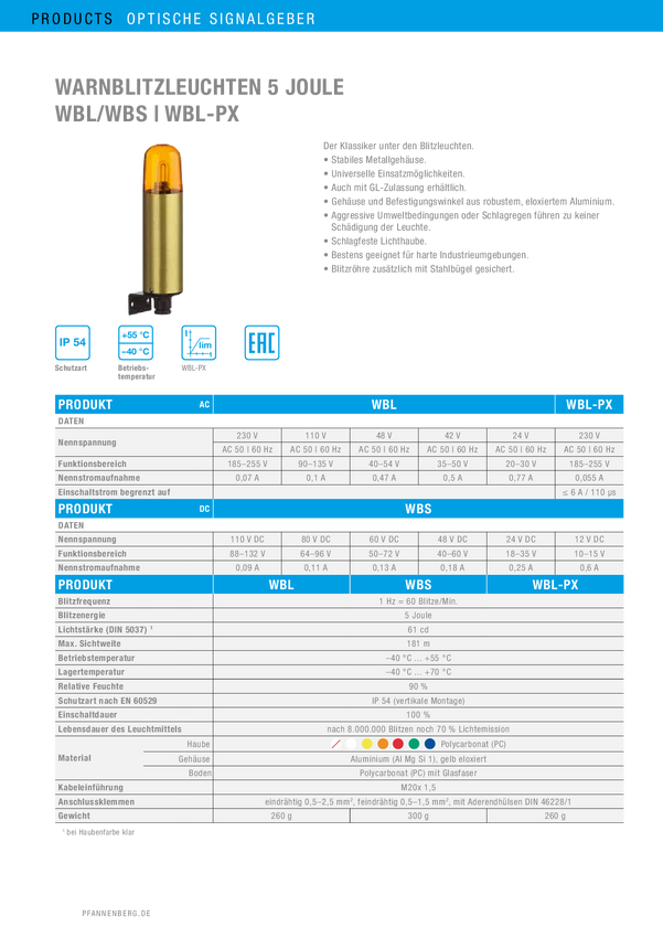 21003103000 Lampa migająca Pfannenberg WBL 230 AC YE żółty 230 V/AC