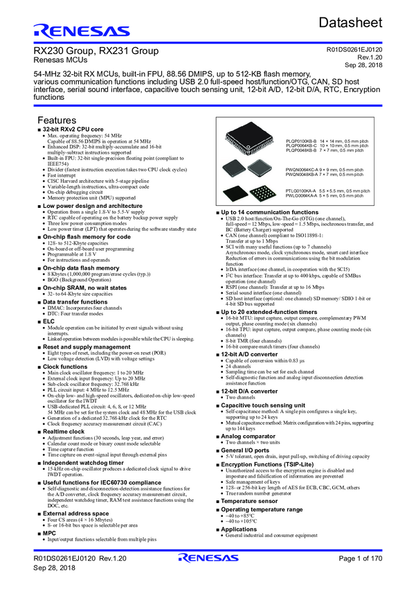 RX230 Low-power, High Performance Microcontrollers with 32-bit RXv2 CPU Core and...