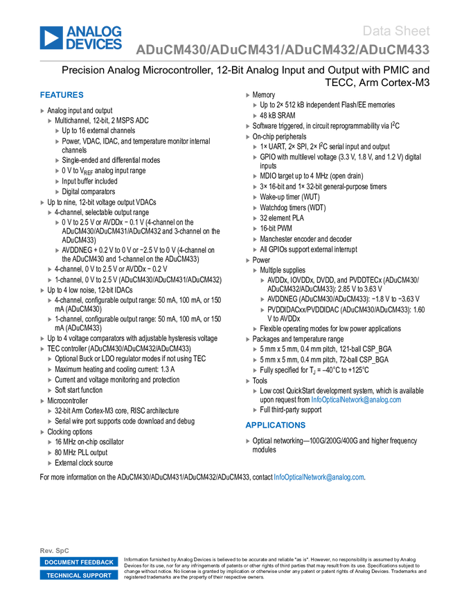 ADuCM432 Precision Analog Microcontroller, 12-Bit Analog Input and Output with PMIC...
