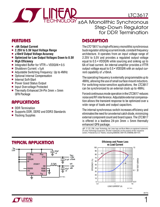 LTC3617 ±6A Monolithic Synchronous Step-Down Regulator for DDR Termination
