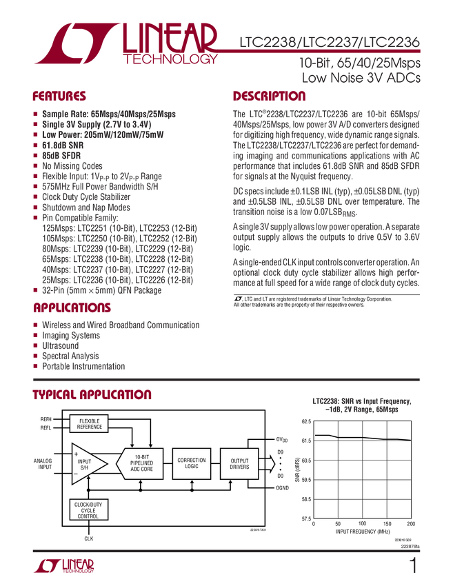 LTC2237 10-Bit, 65Msps Low Power 3V ADCs