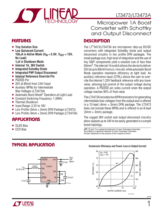 LT3473 Micropower 1A Boost Converter with Schottky and Output Disconnect