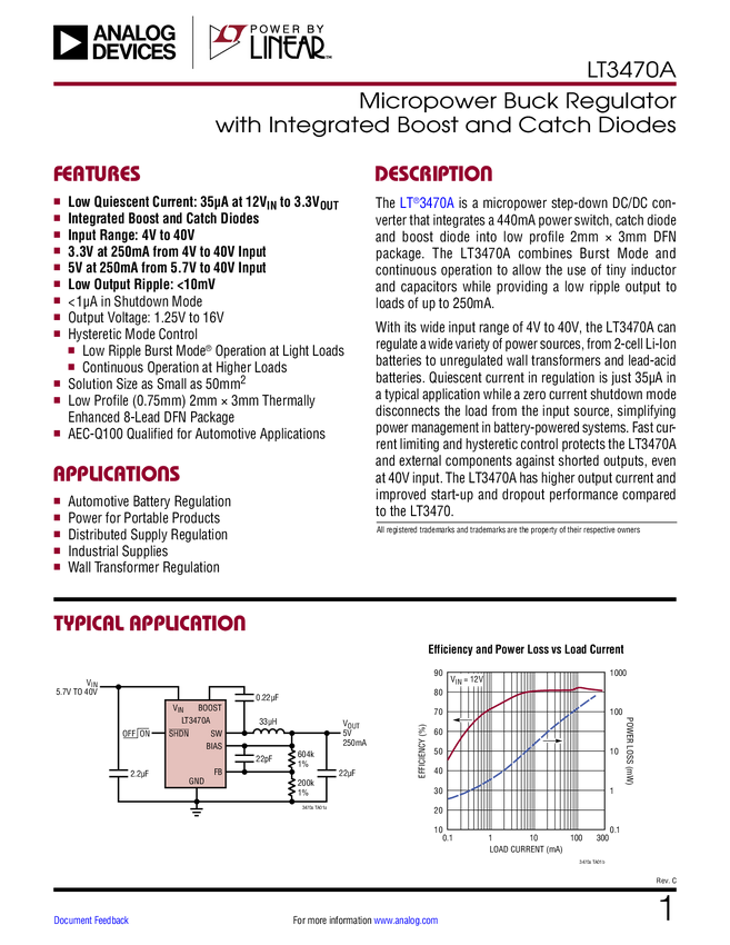 LT3470A Micropower Buck Regulator with Integrated Boost and Catch Diodes