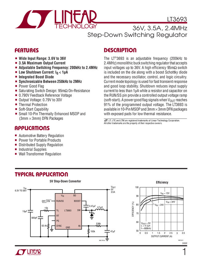 LT3693 36V, 3.5A, 2.4MHz Step-Down Switching Regulator
