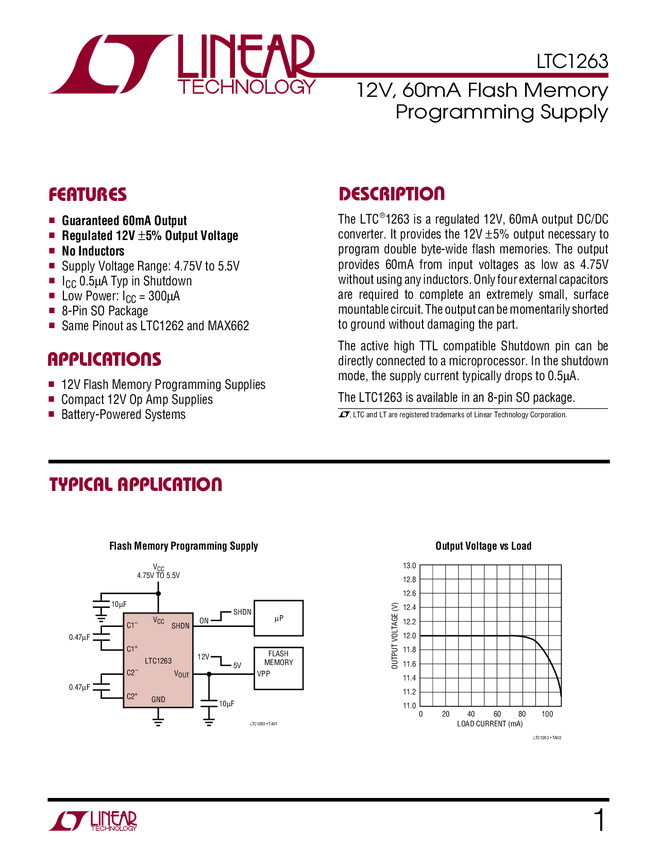LTC1263 12V, 60mA Flash Memory Programming Supply