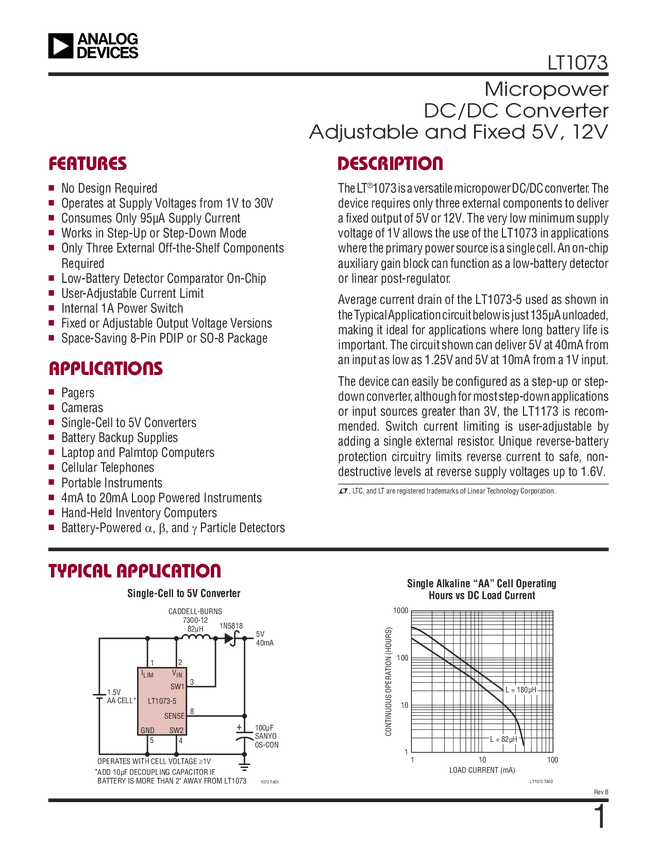 LT1073 Micropower DC-DC Converter Adjustable and Fixed 5V, 12V