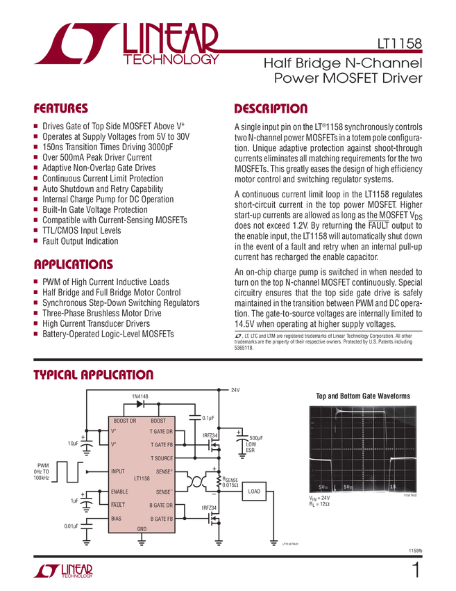 LT1158 Half Bridge N-Channel Power MOSFET Driver