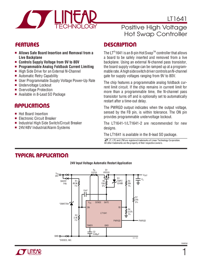 LT1641 Positive High Voltage Hot Swap Controller